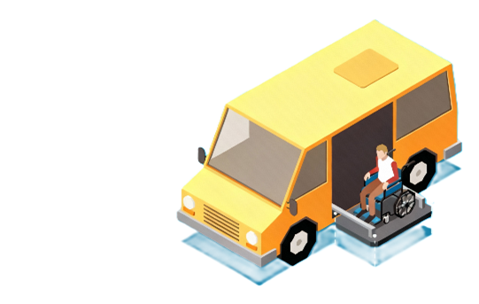 - Les véhicules adaptés aux fauteuils roulants : il s’agit des véhicules équipés d'un système intégré au véhicule destiné à l'embarquement d'une personne en fauteuil roulant (élévateur, rampe...).